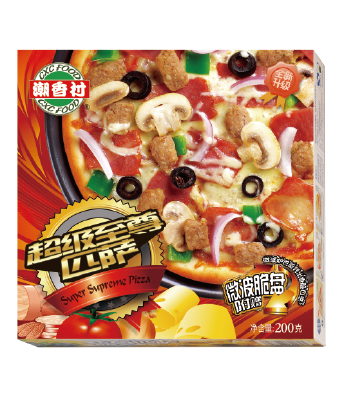 產(chǎn)品介紹:超級(jí)至尊匹薩——匹薩最有人氣的經(jīng)典口味!牛肉腸、五香肉、培根,搭配蘑菇、洋蔥、青椒等,如此豐盛的餡料,佐以正宗的披薩醬、奶味濃郁的優(yōu)質(zhì)進(jìn)口芝士,口口都是令人滿(mǎn)足的好滋。