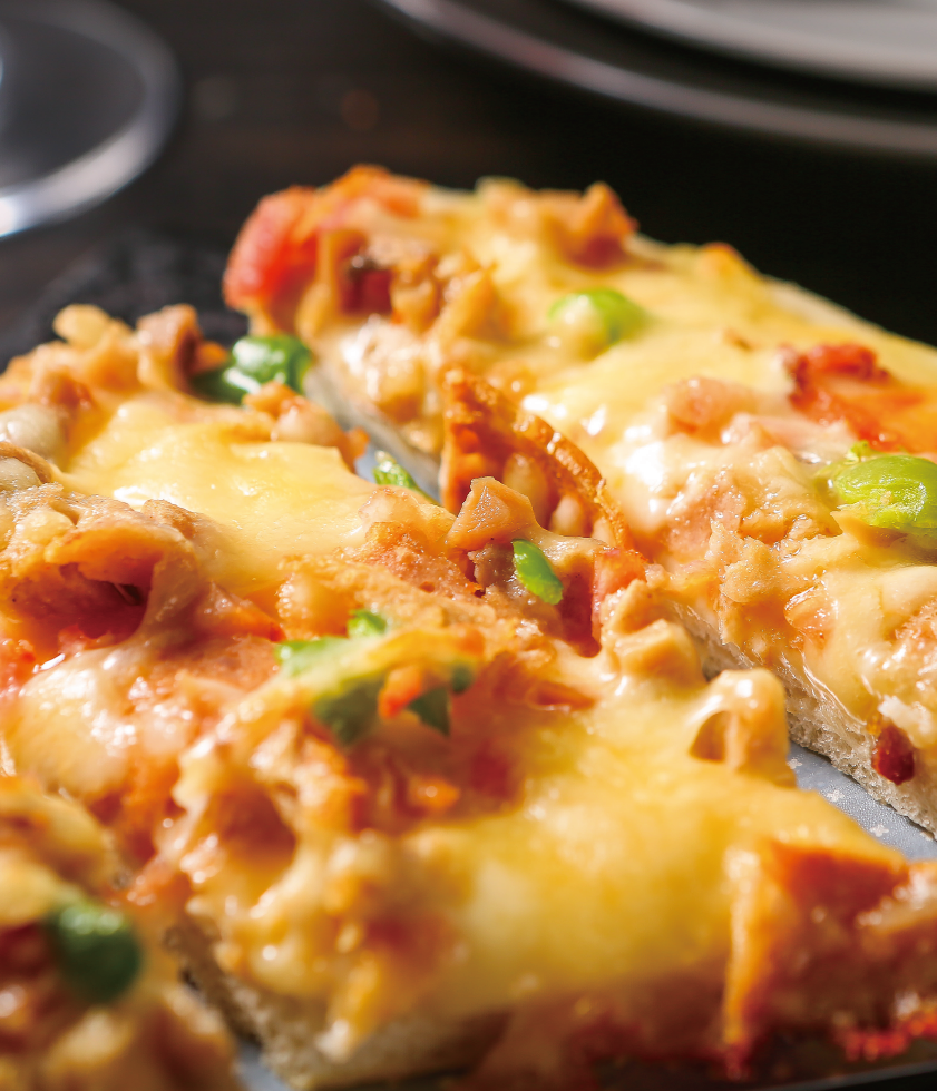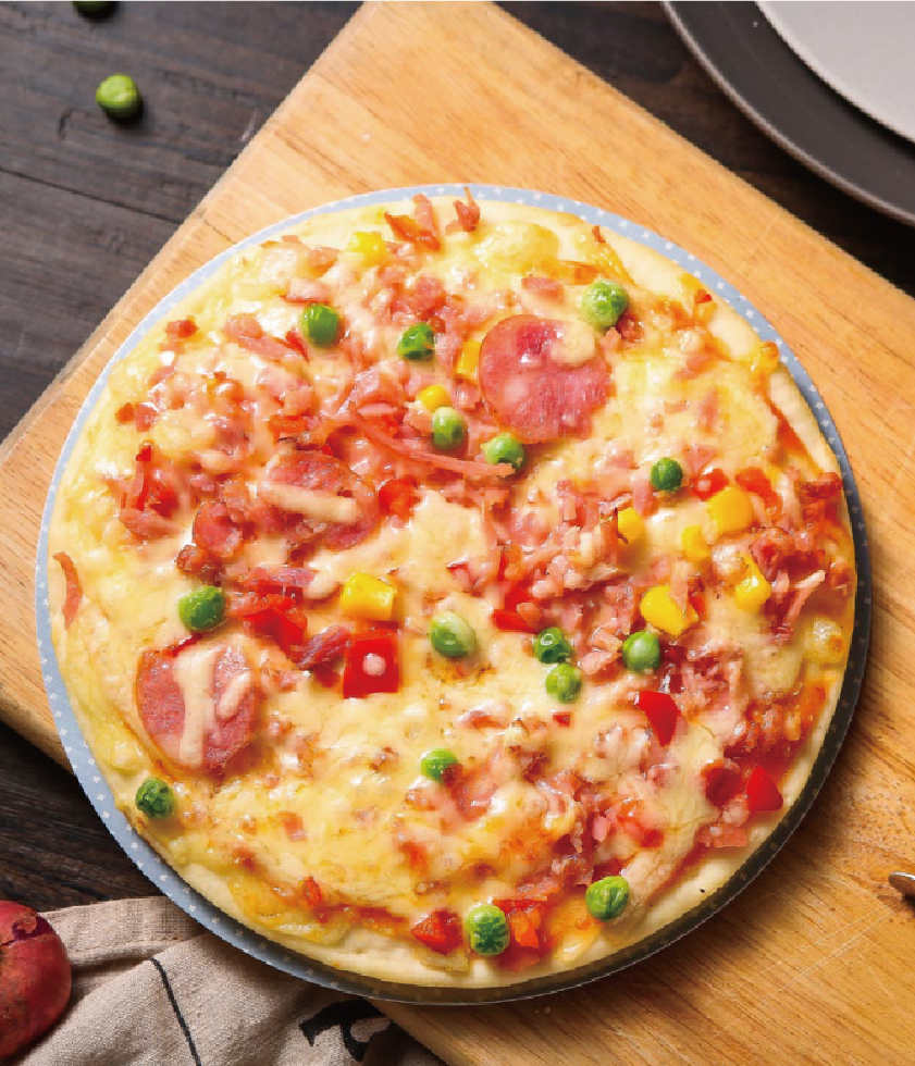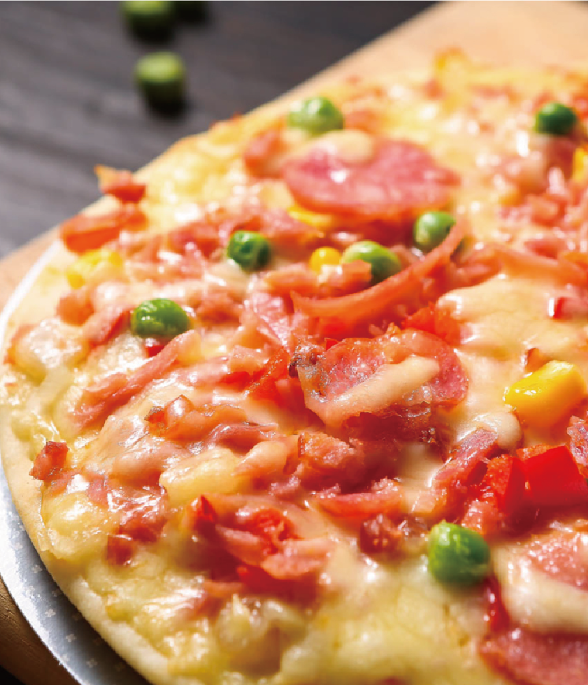 產(chǎn)品介紹:香葷乳酪匹薩——火腿、臘腸、培根,看著就叫人口中生津,搭配青豆、洋蔥、紅椒、玉米,佐以酸甜可口的番茄醬,奶香濃郁的芝士,和精心調(diào)配的香料,咬下去滿口肉香。