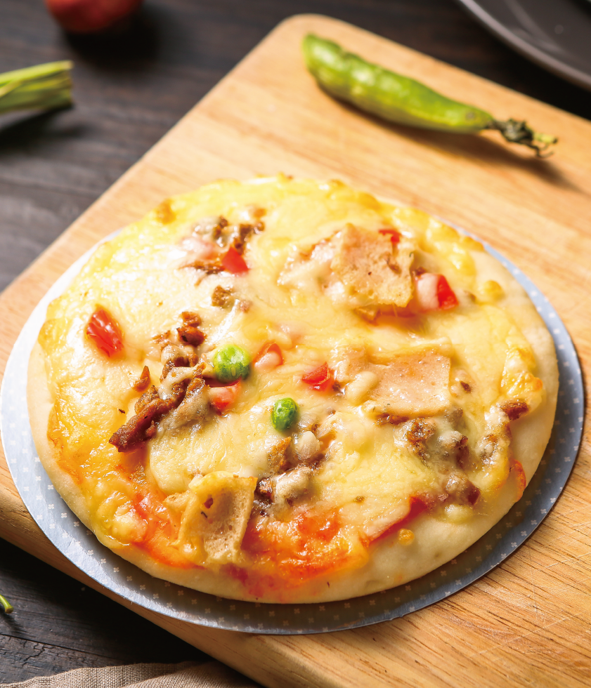 產(chǎn)品介紹:秘制牛肉匹薩——高蛋白、低脂肪的牛肉,向來是食客們鐘愛的肉中驕子,經(jīng)過特別的腌制作為匹薩的主要食料,在洋蔥、青豆、玉米和乳酪的搭配下,發(fā)揮出誘人的滋味。