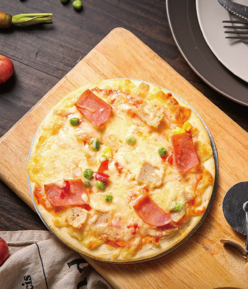 產(chǎn)品介紹:肉香匹薩——肉食主義者的心頭好!火腿、午餐肉,搭配青豆、洋蔥、紅椒、玉米,佐以酸甜可口的番茄醬,和奶香濃郁的芝士,無肉不歡,十足享受 。 工藝:半制成品 規(guī)格(g):120g 包裝規(guī)格:1片/盒 箱規(guī):40盒/箱