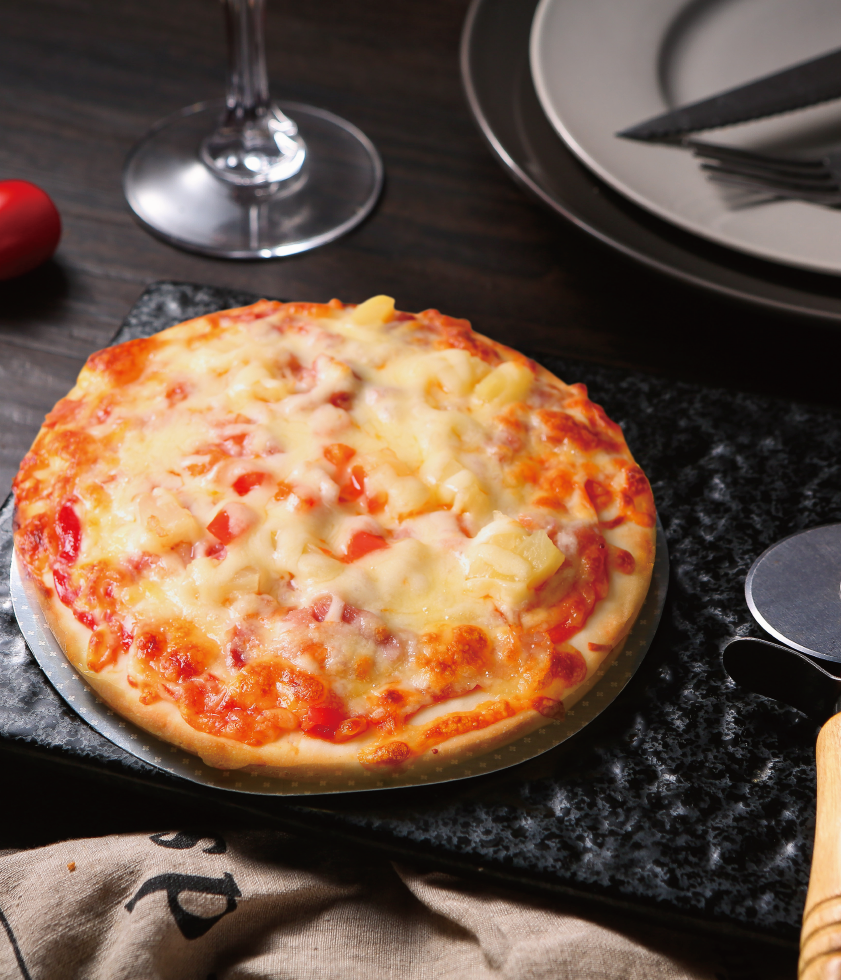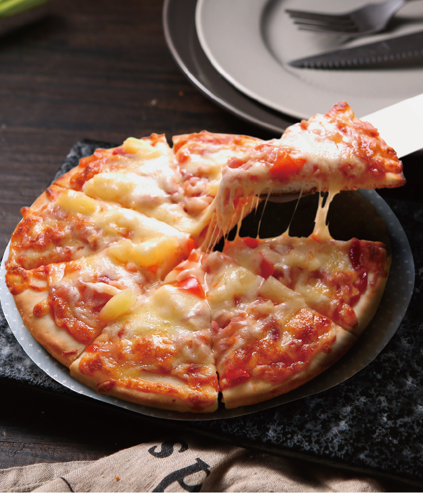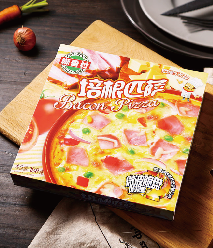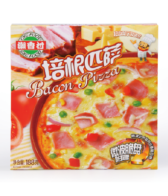 產(chǎn)品介紹:培根匹薩——選用肥瘦均衡的優(yōu)質(zhì)培根肉入料,軟嫩多汁、色澤鮮明、香味四溢,佐以番茄醬和乳酪,加熱后從培根肉飄香與乳酪的奶香味混合在一起,別有一番風(fēng)味。