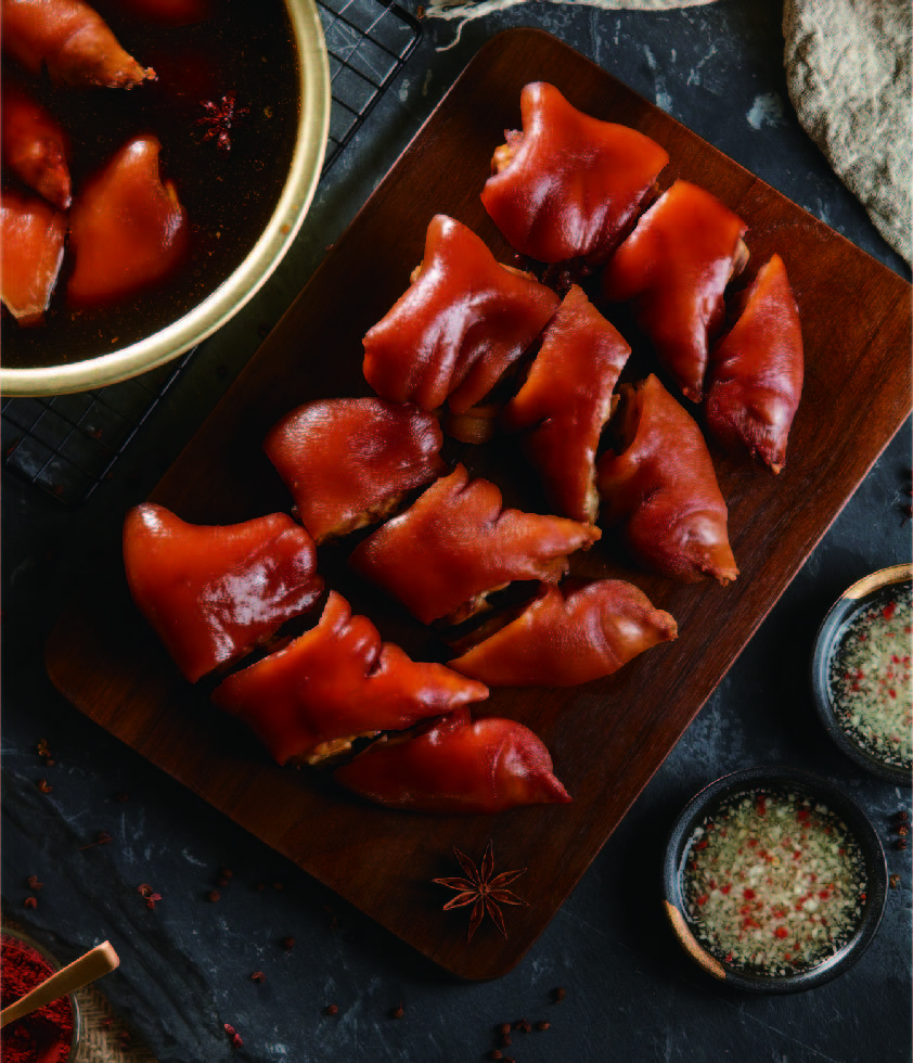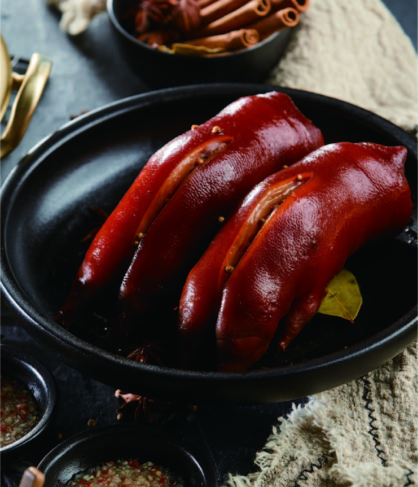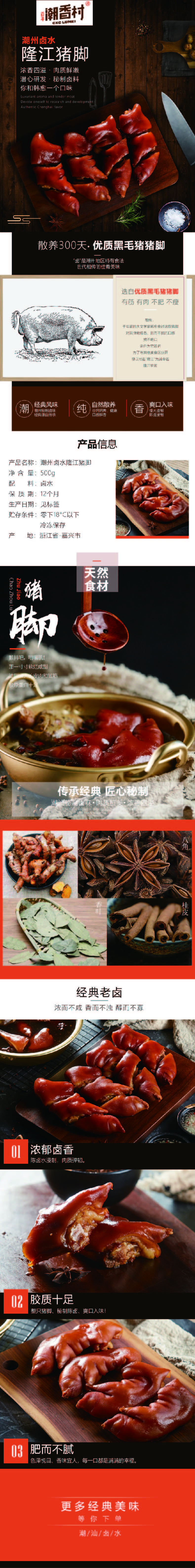 產(chǎn)品介紹:潮州鹵水 隆江豬腳——韓愈的最愛!相傳,千年前的大文學家韓愈食過這款豬腳,對其彈嫩糯香、肥而不膩的口感贊不絕口,親自為它題名,為了與其他美食區(qū)分開,便以地名“隆江”為其命名--隆江豬腳。從此,隆江豬腳名揚四海,備受廣東人民歡迎,當?shù)亓鱾髦@樣一句話:“吃隆江豬腳要用鐵絲箍住舌頭,不然會把舌頭和豬腳一起吞下?!?/p> 工藝:陳鹵鹵制 規(guī)格(g):500g 包裝規(guī)格:500g/袋 箱規(guī):無